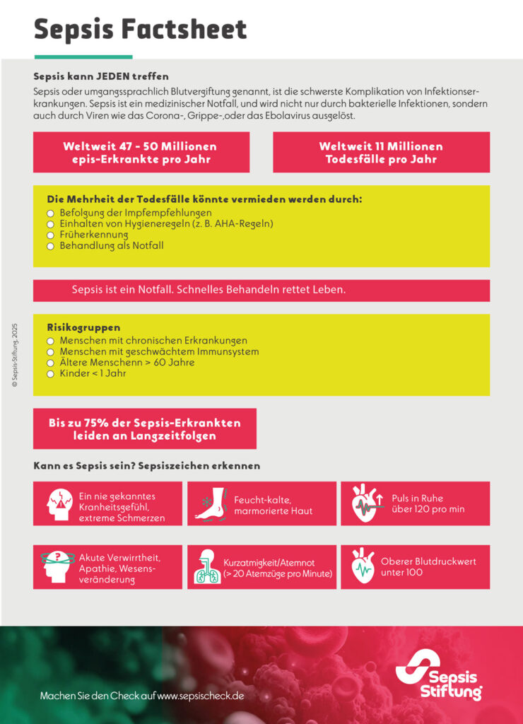 Zusätzlich bietet der interaktive Sepsischeck unter www.sepsischeck.de eine digitale Unterstützung, um Symptome besser einordnen zu können.